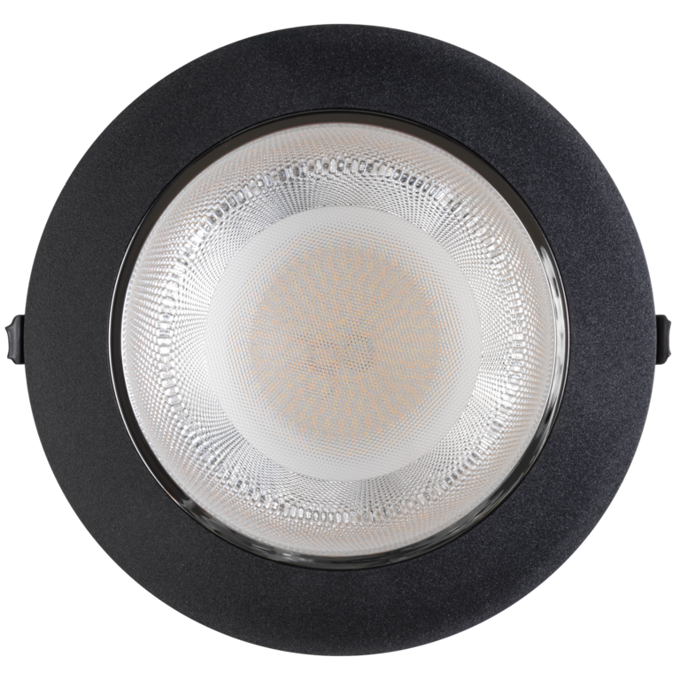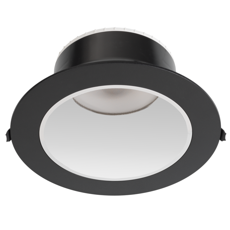 Den innfelte designen kombinert med en effektiv reflektoroptikk og 60° lysspredning gir en jevn og komfortabel belysning uten forstyrrende blending.