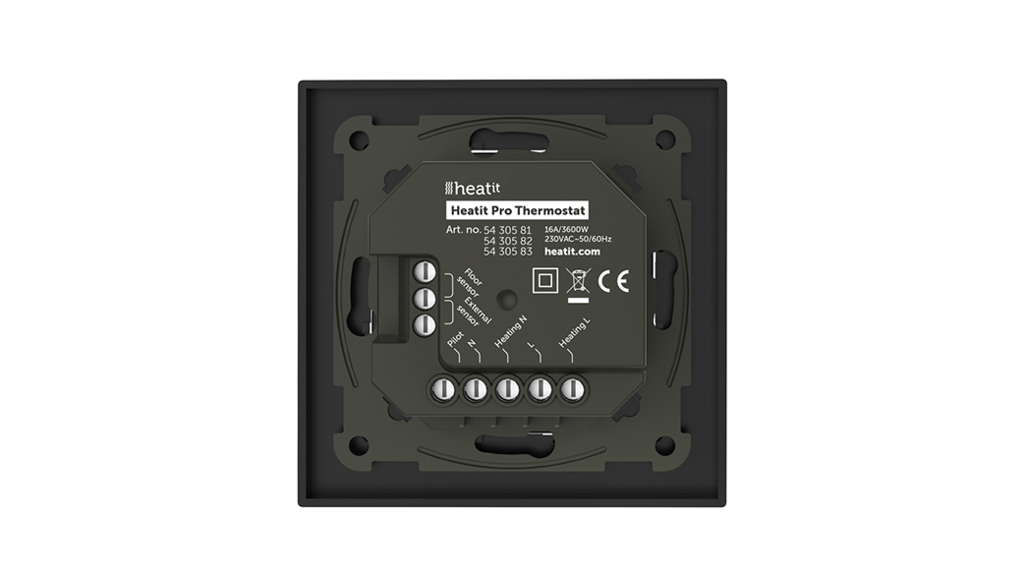 Heatit Pro er en elektronisk termostat designet for elektrisk gulvvarme, vannbåren varme og kjølesystemer. Termostaten har et brukervennlig grensesnitt og kan lett programmeres via knappene i front.