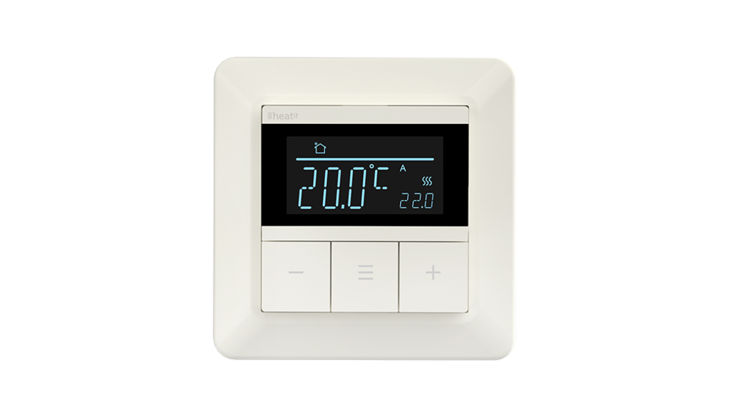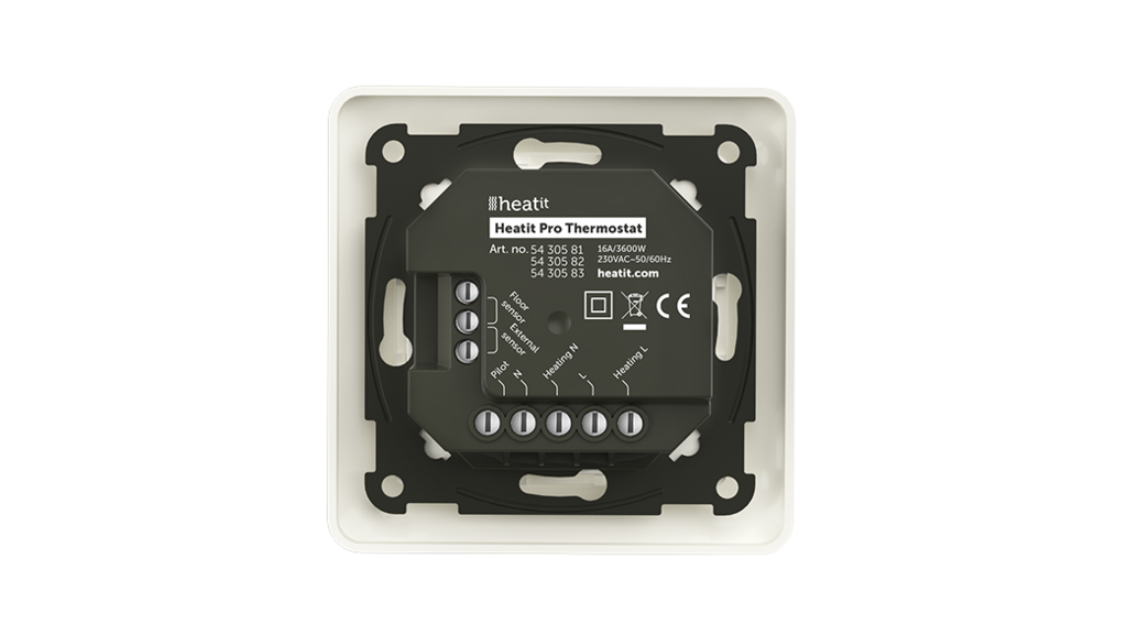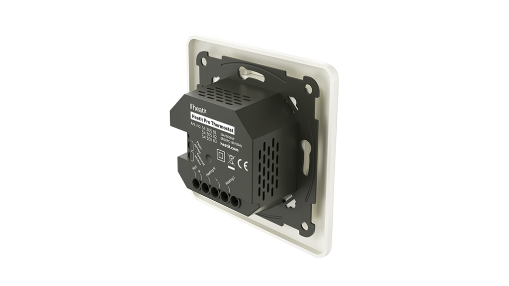 Heatit Pro er en elektronisk termostat designet for elektrisk gulvvarme, vannbåren varme og kjølesystemer. Termostaten har et brukervennlig grensesnitt og kan lett programmeres via knappene i front.