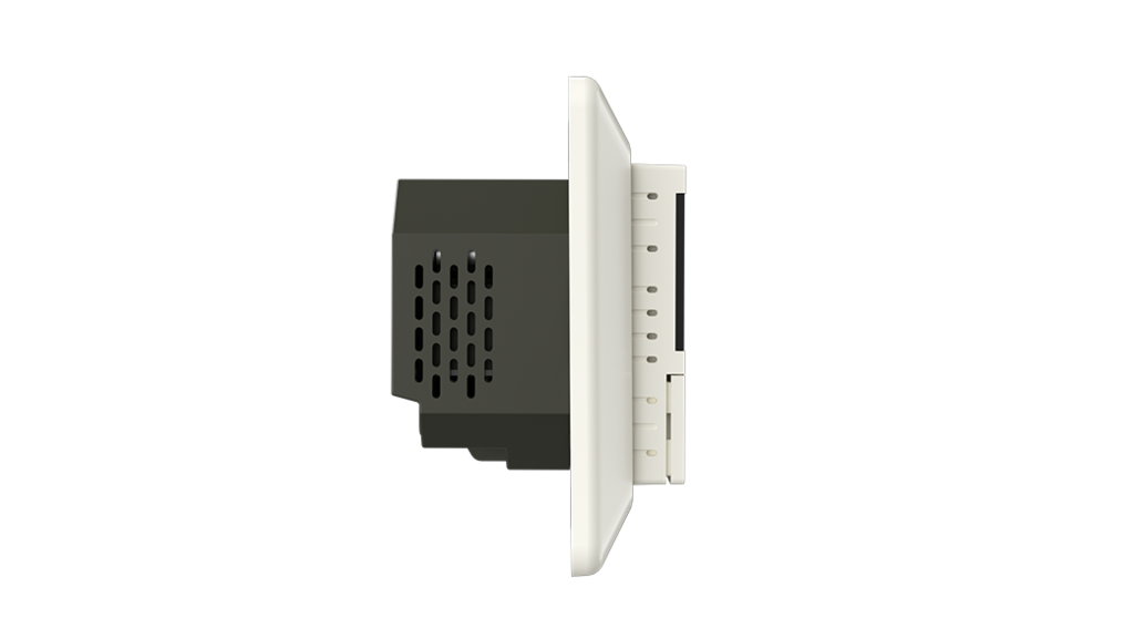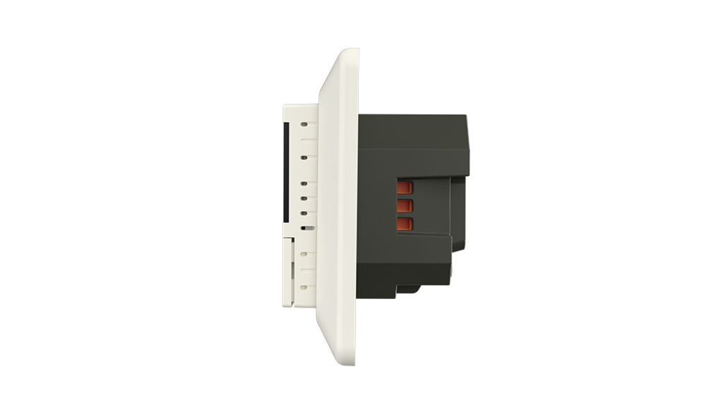 Monteres i standard veggboks og passer inn i System 55 rammer. Termostaten har metallramme for solid innfesting i veggboks. Den har en intern temperaturføler, men kan også tilkobles to eksterne temperaturfølere.